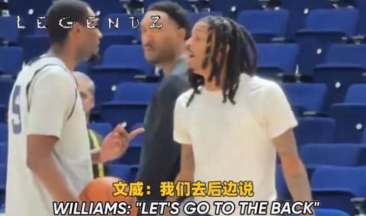 今日,灰熊常规训练时,莫兰特和小文斯·威廉姆斯在球场对峙,疑似发生了激烈的口角。文威多次要求去更衣室私下解决,莫兰特坚持当场对峙;助教上前制止被文威推开,莫兰特言辞激烈(“我就在这儿,有什么当场说”),双方僵持后分开。