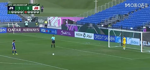 比赛背景:两队120分钟战成1-1,进入点球大战;首轮日本罚进、约旦罚失,日本占优。