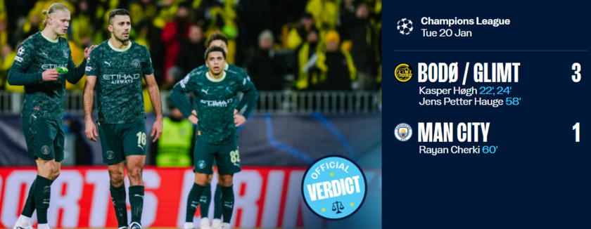 nba直播讯 北京时间2026年1月21日,欧冠联赛阶段一场备受关注的较量在挪威阿斯皮米拉球场展开,主场作战的博德闪耀迎战英超冠军曼城。出人意料的是,凭借惊人的效率与坚韧的防守,博德闪耀以3比1的比分战胜强大的对手,收获了一场载入队史的经典胜利。