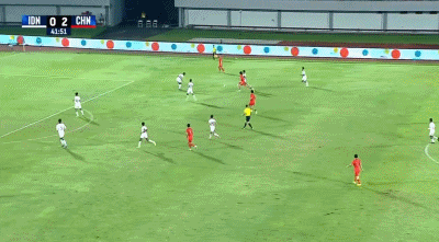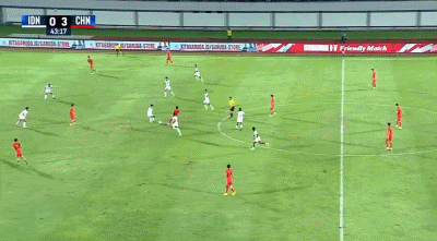 第43分钟:张旭尧远射经帅惟浩折射入网,国少4-0领先进入半场。