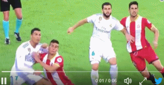 镜报表示,通过慢镜头回放,C罗在一次角球过程中与赫罗纳防守球员佩雷-庞斯纠缠在了一起,随后C罗的手抓向了佩雷-庞斯的头部。