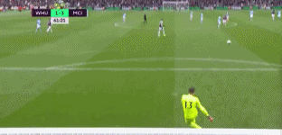 比赛第61分钟,西汉姆联门将阿德里安后场发球失误,曼城中场断球后果断送出直塞,拍马赶到的斯特林接球就是一个解围...哦不...单刀机会。西汉姆联的后卫们望球兴叹举手投降,但是他斯大侠是什么人啊,英格兰前锋在自己家里怎么能轻易收你这西班牙门将送来的大礼?退回去!斯大侠牢牢贯彻“来的都是客”这一理念的厚道之处,一脚射出“我奶奶站在那儿都能扑出去”的射门。