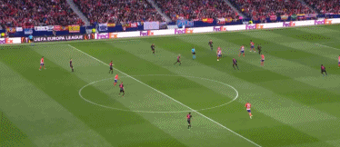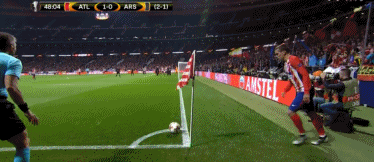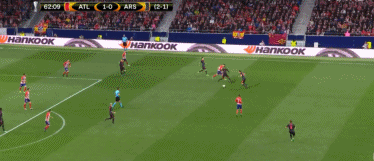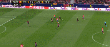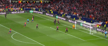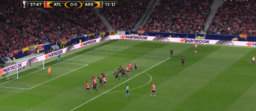 第37分钟,科克开出前场右路定位球给到禁区,门前的格里兹曼背身将球巧妙卸下后,转身一脚抽射稍稍偏出球门左侧立柱出了底线。