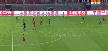 埃尔克森面对传中球,突然跃起倒挂金钩射门,皮球被侯森化解,随后由于武磊补射时已经处于越位位置,所以进球无效。