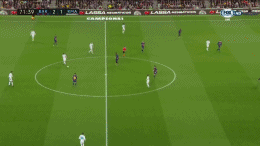 通过上图可以看到,在巴萨的左侧进攻中,贝尔落位到低位形成一个532的阵型。在巴萨将球回做到高位并转移右侧之后,皇马防线上的空档就被巴萨直塞利用。