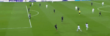 第83分钟,皇马快发边线球!!莫德里奇横敲!!马约拉尔再分左侧!!克罗斯跟上推射破门!! 6-0!