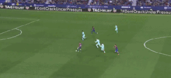 第39分钟,禁区线附近的皮克分球,苏亚雷斯将球一做,跟上的库蒂尼奥带球内切后一脚漂亮的抽射破门得分!2-1!巴萨扳回一城!