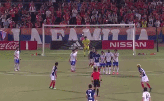 在5月16的日本J联赛杯的最后一轮比赛中,横滨水手2-1新泻天鹅,第41分钟横滨水手的球员扇原贵宏罚出了线路十分鬼魅的任意球。