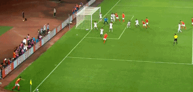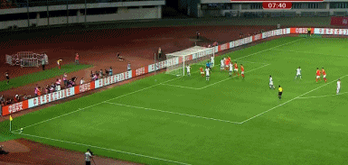 第41分钟,武磊接应角球机会垫射破门,国足1-0缅甸。