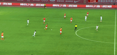 第77分钟,武磊左边路接球后内切射门,最终皮球击中边网。