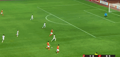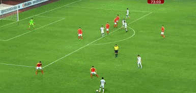 第5分钟,国足打出前场的快速反击,武磊在左路高速带球,传中找到了从后跟上的黄紫昌。面对门将,黄紫昌有点轻敌,将球踢偏!