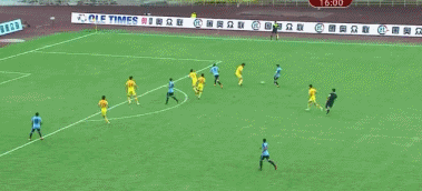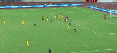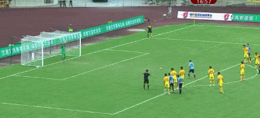 第11分钟,国青打出精彩流畅的配合,何海龙最后一击将球打高。