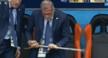而乌拉圭老帅也激动的拄拐起身庆祝,这一幕令人动容。