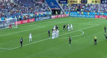 补时第5分钟,梅西任意球击中人墙。