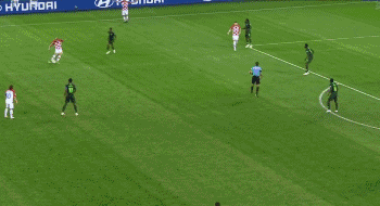 33分钟,克罗地亚搏到角球,斯特里尼奇前点一蹭,小禁区内曼朱基奇俯身冲顶,皮球砸在埃特博身上变向进球,乌龙球!克罗地亚1-0领先。