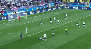 在比赛进行的第88分钟,德国球员布兰特右脚抽射偏出球门左侧,德国离绝杀仅仅差了20cm,目前德国0-1墨西哥。
