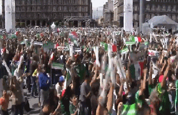 重点来了,当墨西哥进球领先后,球迷欢呼雀跃!锣鼓喧天,鞭炮齐鸣,红旗招展,人山人海...这也难怪为什么为引发地震了。