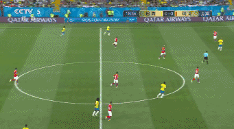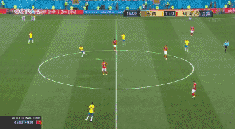 图1:对于巴西队左侧攻击组进行站位限制的同时,增加硬度的逼抢,从上图来看,这种身体对抗让内马尔压力巨大,而且,再加上他全场11次被侵犯,瑞士队的伐木战术可见一斑。