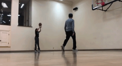 视频中,班巴与一位小朋友进行投篮机比赛,他在不断出手的同时随手盖掉了身旁小朋友的投篮,最后还庆祝起了胜利。