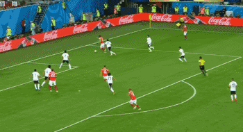 比赛进行到58分钟分钟,俄罗斯右侧拿球组织进攻,马里奥底线拿球,倒三角传中,切里舍夫门前跟上推射进球,为俄罗斯扩大了领先的优势,这球也是切里舍夫为俄罗斯在小组赛打进的第三个进球,目前与C罗领跑射手榜。