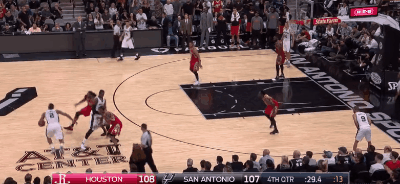 在17年3月7日对阵火箭以及MVP大热门詹姆斯-哈登,伦纳德从末节开始接管比赛,最后28秒迎着内内的防守,强行一记3分帮助马刺反超比分,紧接着回过头来飞身而出送给哈登钉板大帽。