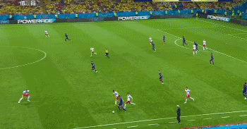 比赛第39分钟,哥伦比亚开出战术角球,金特罗禁区前沿带球后送出轻巧直塞,埋伏在禁区内的J罗心领神会接到皮球,送出一记销魂挑传,米纳禁区中路突然杀出,将球顶进。