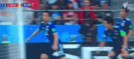 一位看台上的日本球迷展现了一波精湛的头球技巧