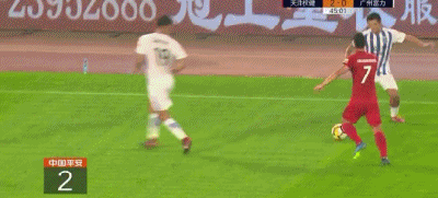 半场比赛结束,天津权健2-0广州富力。