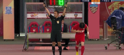 第40分钟,苏缘杰前场禁区内尝试倒挂金钩未果,落地后摔伤肩膀。