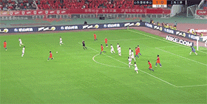 比赛进行到35分钟,鲁能队前场断球,随即传到前场左路并传中,跟进的前锋佩莱头球将球顶进。之后,VAR和裁判员开始进行沟通,然后可以看到裁判员做出了进球无效的手势,判罚上港队后场直接任意球恢复比赛。