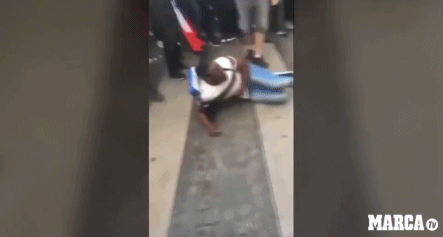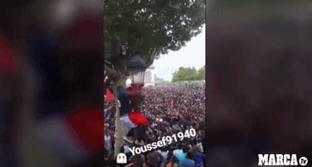 法国球迷跳树庆祝祖国球队获得世界杯冠军。