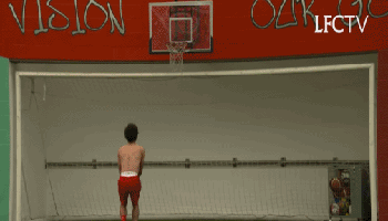 萨拉赫慢慢悠悠地进行投篮,尝试三次投篮都没能命中,萨拉赫自己也不好意思地笑了。