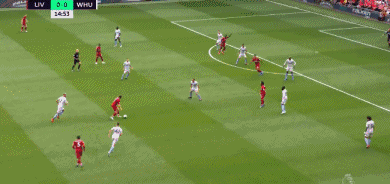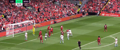 半场结束,利物浦2-0西汉姆。