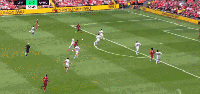 补时第46分钟,利物浦队反越位成功,马内近距离包抄破门。利物浦2-0西汉姆!