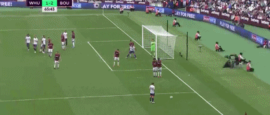 本场比赛在伦敦体育场打响。第33分钟,伯恩茅斯后卫禁区内铲人犯规,西汉姆获得点球。