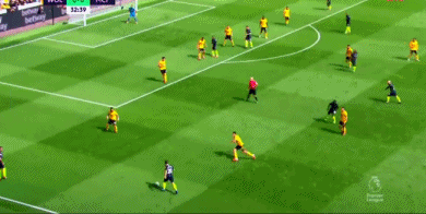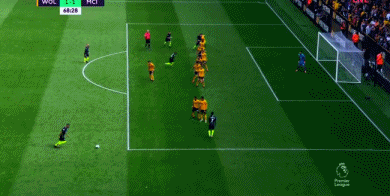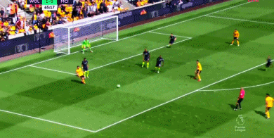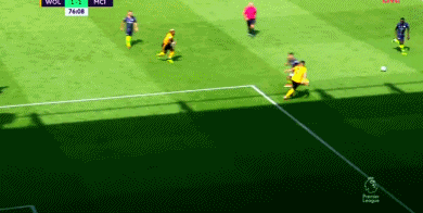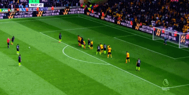 1分钟后,狼队开出战术角球,穆蒂尼奥左路传中,博利门前俯身冲顶,皮球飞速窜进球门死角,狼队领先,1-0!从慢镜头回放来看,博利的进球有手球嫌疑。**