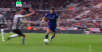 第20分钟,迪亚梅防守中踩到阿扎尔小腿,阿扎尔接受队医治疗后又投入比赛。