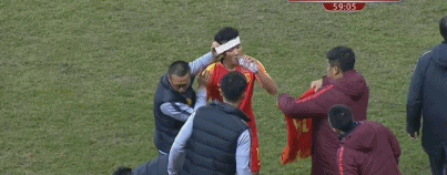 第58分钟,林良铭在一次角球争顶中险些破门,随后林良铭的右眼眼角出血,到场边紧急止血,打上了绷带之后继续留在场上拼搏。林良铭在此次碰撞中造成眉骨裂开,但是他接受简单的包扎之后继续坚持比赛。