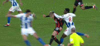 上轮英超,布莱顿对阵伯恩茅斯,裁判迈克-迪恩出现了巨大失误。首先是布莱顿8号队员比索玛从后推倒了对方,但是迪恩却将黄牌给到了旁边5号的邓克。