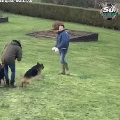 很快第二条牧羊犬又冲了上来咬住特里另外一只手臂,最终导师上前喊了停,两条牧羊犬才松开血盘大口。