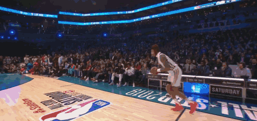 在今天的扣篮大赛上,柯林斯在第二扣玩起了创意,脖子上戴着围巾,头上套着复古的飞行员帽,然后飞越飞机模型,只可惜球虽然扣进了,但飞越的过程中脚踢掉了模型的机翼。