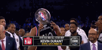 即便是在2019年的全明星赛上,杜兰特的球风也是如此无解又关键,在时隔7年之后,杜兰特再次捧起了全明星MVP奖杯,说不定到六月,还有一个在等着他!