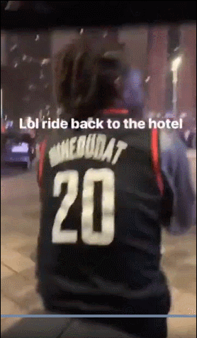 本场比赛赛后则是发生了搞笑的一幕,根据追梦格林个人的INS故事,他似乎被球队的大巴给“遗忘了”,最终追梦自己坐了休斯顿当地的自带BGM的神奇脚踏车返回宾馆。