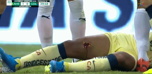 比赛进行到第40分钟的一次拼抢中,瓜达拉哈拉球员布里塞尼奥狠狠蹬踏了多斯桑托斯的大腿,后者痛苦倒地,很快被担架抬走。