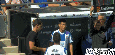 第64分钟,西班牙人换人调整,武磊替下迪达克。