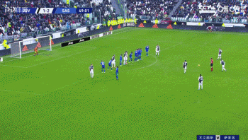 在1-2落后的情况下,C罗曾有机会利用任意球破门。葡萄牙人这次射门质量非常高,皮球飞向球门右上角,但萨索洛门将图拉蒂做出了一记世界级扑救。C罗目光凝重地摇着头,在加盟尤文之后,他始终没有进过任意球。
