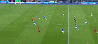 第63分钟,佩雷拉禁区内右侧马赛回旋摆脱罗伯逊防守底线附近右脚传中,皮球被范戴克拦截。