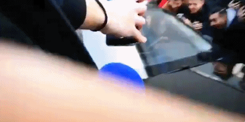 由于有大批球迷和记者前来围观、欢迎,伊布乘坐的汽车寸步难行,保镖不得不在前面开路。