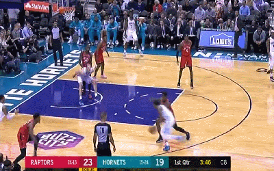 开场后黄蜂首先在外线找到手感取得领先,依靠布里奇斯的火热手感首节黄蜂稍稍领先。第二节猛龙掀起反扑在上半场结束时以60-55领先黄蜂。下半场回来阿努诺比首先爆发帮助猛龙拉开比分,但黄蜂在第三节末端和第四节初段打出一波16-0的高潮直接将比分反超,双方常规时间打成平手,加时赛中伊巴卡仍旧发挥出色,他关键两罚全中帮助猛龙112-110险胜黄蜂。