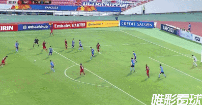 上半场结束,日本队占据绝对优势,但得势不得分,双方仍是白卷。